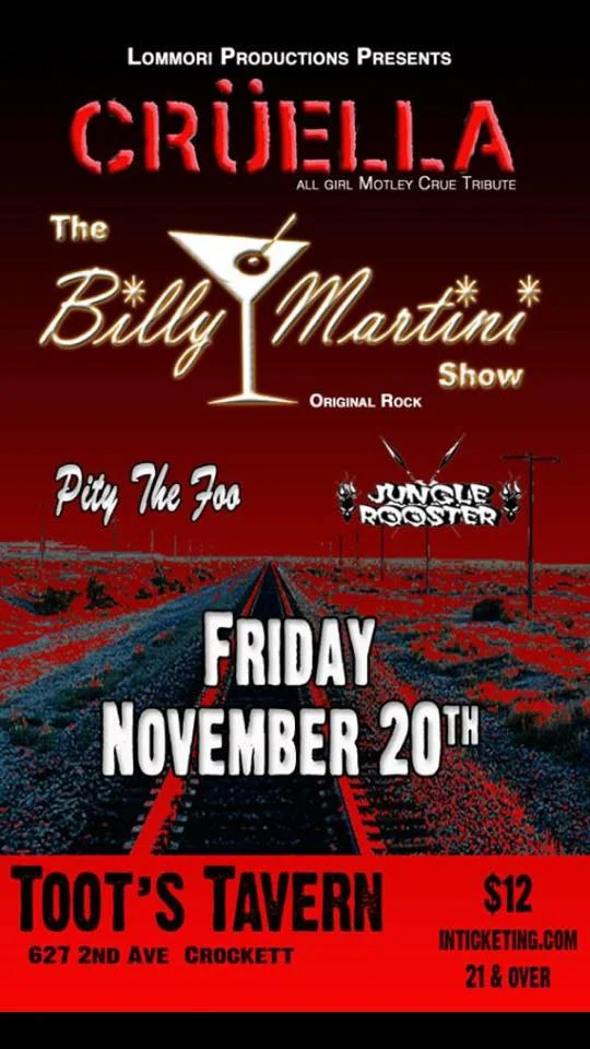 Cruella...All girl Motley Crue tribute!, Pity the Foo, The Billy Martini Show, Jungle Rooster