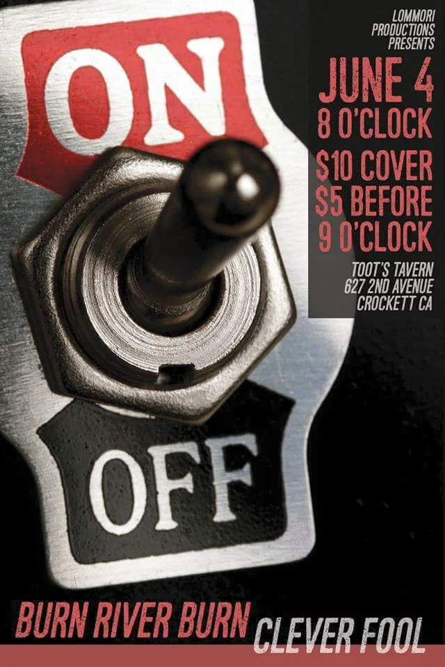 8pm      21+      ON/OFF, Burn River Burn, Clever Fool