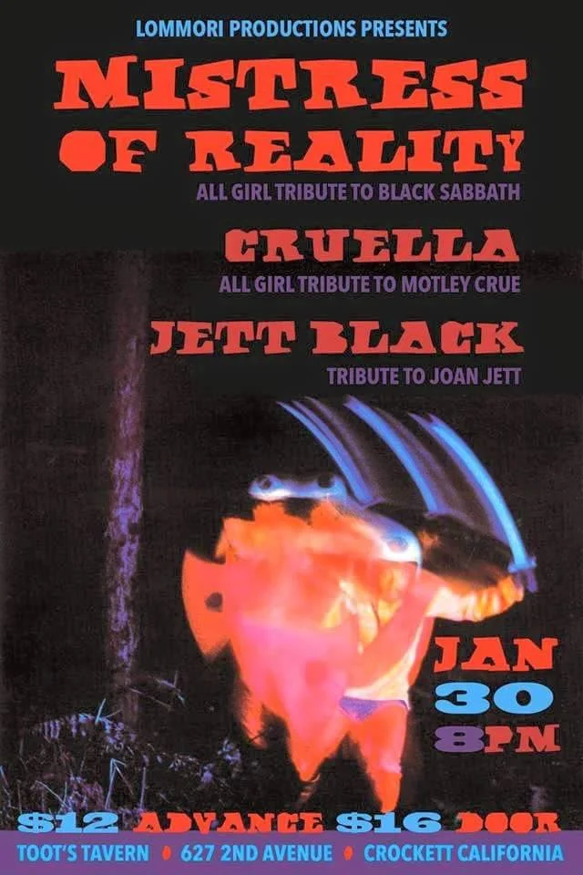 Cruella (all girl Motley Crue tribute), Mistress of Reality (all girl Black Sabbath tribute), and Jett Black (Joan Jett tribute)