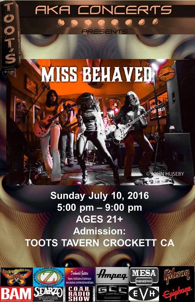 Kitchen open, full bar, drink specials, free live music...featuring the talent of "Miss Behaved" the All-Girl Rock Tribute Band!