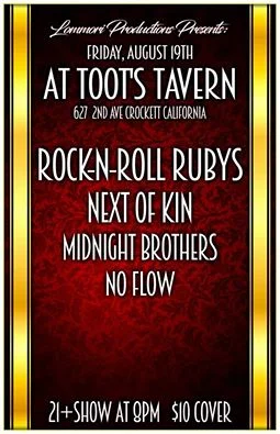 Super fun show, awesome beer & drinks, food. Featuring; The Rock n Roll Rubys (The all -girl Johnny Cash Tribute Band), Next of Kin, Midnight Brothers, Flow