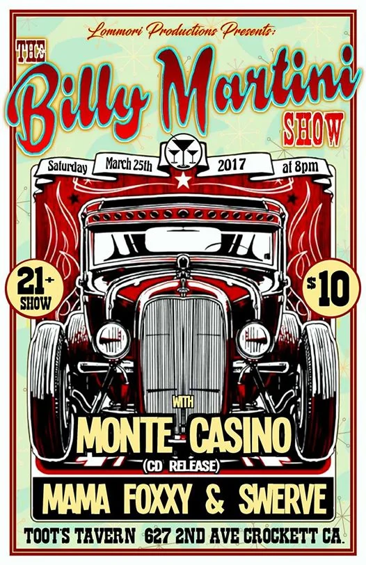 Santa Cruz rockers, Billy Martini and Steve Allison have been playing and writing music together for years, but when Billy Martini stepped from behind the drum kit and took the microphone and a feather boa, The Billy Martini Show was born. Hard rockin’ tunes along the lines of Foo Fighters and AC/DC, and a stage show with costume changes and dancing girls that has been compared to The Tubes and KISS.